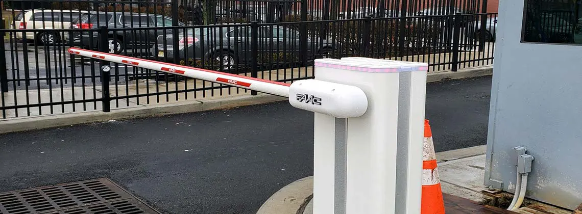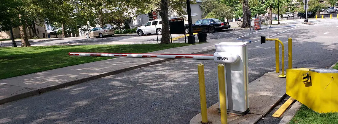 Vehicle barrier arm with card reader for entrance